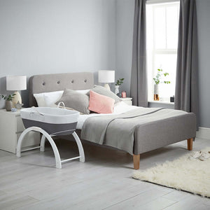 Die moderne, stylvolle alternatief vir die tradisionele Moses-mandjie. Die Shnuggle Dreami Moses-mandjie is 45% langer as tradisionele mandjies.