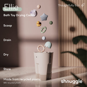 Skep, dreineer, droog en bêre jou badspeelgoed netjies weg met Ellie, die Badspeelgoed Drooghouer - 'n slim droog- en bêreoplossing vir al jou kleinding se badspeelgoed.