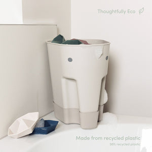 Ellie se innoverende olifantontwerp beskik oor 'n oulike maar praktiese slurphendel om speelgoed gemaklik en maklik na badtyd op te skep en die water te laat dreineer. Plaas dit eenvoudig op die aparte vrystaande drupbak om enige oortollige water op te vang, sodat die speelgoed lugdroog kan word en die risiko van skimmel kan verminder.