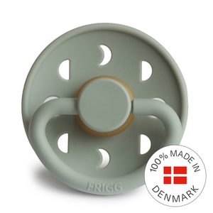 FRIGG Moon Phase is a round pacifier with a round nipple shape. The round pacifier resembles a mother’s breast in both shape and material. The explanation for this is that when the child is about to breastfed, the tongue rolls up around the nipple and creates a vacuum, which causes the milk to flow. When the child sucks on a round pacifier, it rolls its tongue around it the same way.