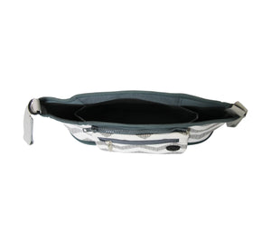 It features multiple sections, including zipped compartments for better organisation and secure storage.